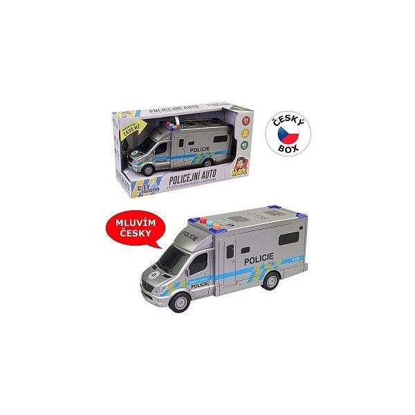 Auto policejní 19,5 cm, světlo, zvuk, na baterieHračka je určena pro děti 3+.Rozměr hračky je 19,5 x 6,5 x 8,5 cm.Materiál hračky je plast.Balení hračky je open box.Produkt je určený pro kluky.Ke zprovoznění produktu jsou potřeba 3 AG13 baterie.Baterie jsou součástí balení.
