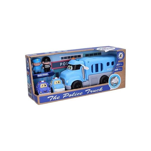 Auto policejní set 4ks. velikost auta 26cm. Obsahuje velké auto, 2malé auta 7cm, 2 panáčky. Světelné a zvukové efekty. Setrvačník. Baterie 3xAG13 součástí. Věk: 18m+