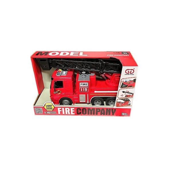 Auto hasičské stříkající s efekty. Velikost 30 cm. Na setrvačník. Světelné a zvukové efekty tlačítky na kabině. 3xAG13 baterie do střechy kabiny součástí. Nádržka na vodu zajištěna polohovací pojistkou. Možnost ji naplnit i v autě po odklopení zátky nádržky. Stříkání tlačítkem na nádržce. Věk: 3+
