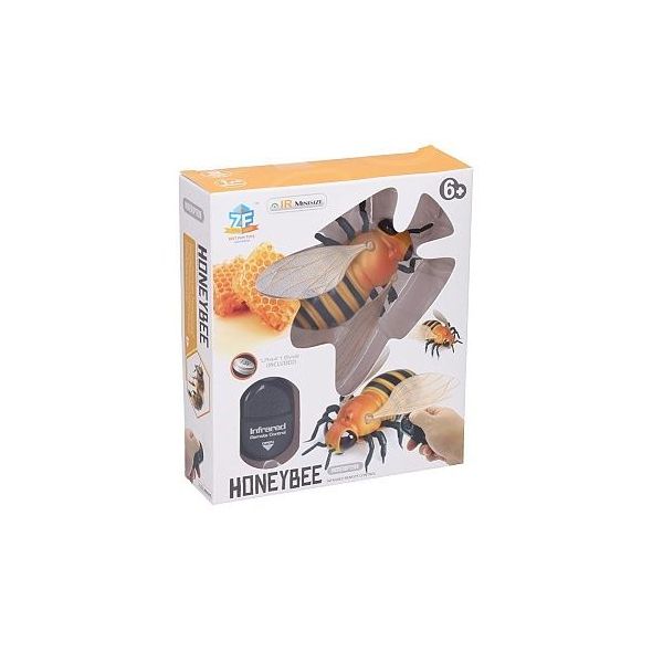Včela na dálkové ovládání. Parametry: Velikost 13x11 cm. Výdrž až 20 min, dosah 10 m. Baterie: včela - 3 x AG13, ovladač - 3 x AG13 (jsou součástí balení) Rozměry balení: 16,7 x 23,5 x 5,3 cm Věk: 6+