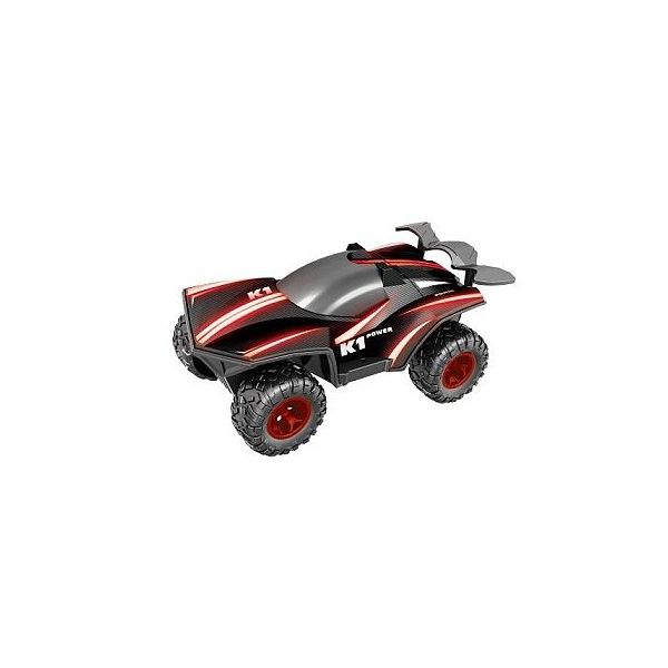 uto terénní RC. Rozměry 30x16x13 cm. Světelné a kouřové efekty. 5 světelných módů. Frekvence 2.4 GHz. Rychlost 10 km/h. Bateriový pack 3.7V 500mah do auta součástí, 2xAA baterie do ovladače nejsou součástí. USB kabel součástí. Nabíjení 2 h. Provozní doba 20 min. Dosah 25 m. Přepínač ON/OFF na spodní straně auta. ON/OFF tlačítko mezi páčkami na ovladači. Levé tlačítko na ovladači - kouřové efekty. Pravé tlačítko na ovladači - přepínání světelných módů. Nádržka na vodu v zadní části auta. Nádobka na vodu součástí. Věk: 3+