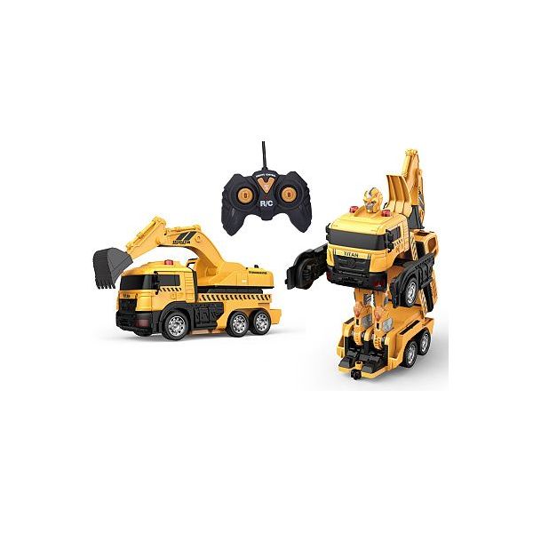 Autorobot RC na dálkové ovládání se pouhým stiskem tlačítka transformuje ze stavebního auta na bagr. Velikost 29 cm. Pohyblivé rameno bagru, manuální pohyb Frekvence 40 MHz. Robot - 1x3.7V bateriový pack (součástí), ovladač - 2xAA (není součástí).