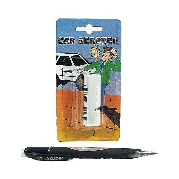 Nalepte samolepku na auto oběti a čekejte na jeho reakci. Nejlépe škrábanec vynikne na bílé barvě.