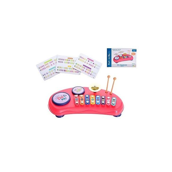 Xylofon 35cm s bubínky a činely + noty 18m+
