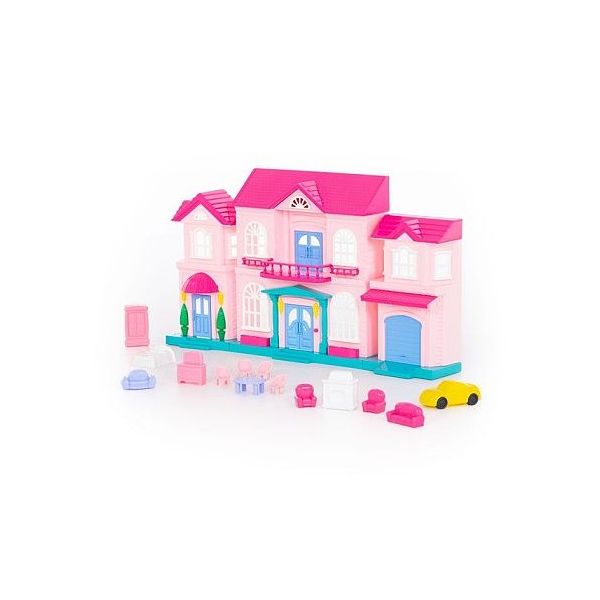 Domeček pro panenky Sofinka s nábytkem a autem 14 dílů . Baleno v sáčku, rozměry balení: 270 x 200 x 285mm /+3 ****