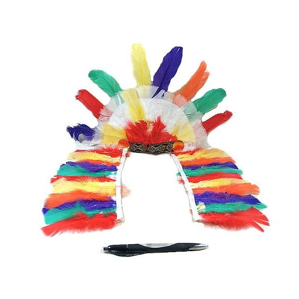 Karnevalová čelenka náčelníka zdobená barevnými pery.