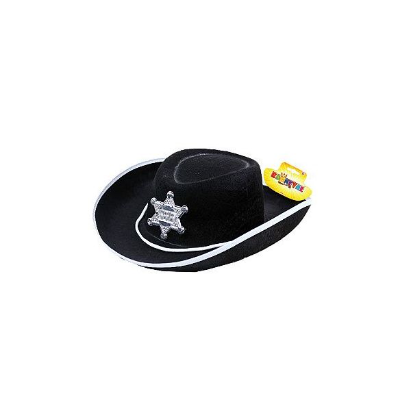 Senzační klobouk pro malé šerify! Tento černý elegán je zdoben opravdickým odznakem s nápisem SHERIFF a stříbrným lemováním. Staň se hvězdou karnevalového večírku díky tomuto nepřehlédnutelnému klobouku a ohrom tak všechny své kamarády! Věk: 3+