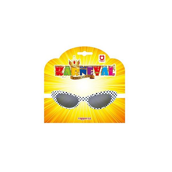 Elegantní karnevalové retro brýle v bílé barvě s černými puntíky. S tímto doplňkem na očích budete na párty za hvězdu! Rozměry: 190×170×20 mm. Věk: 3+