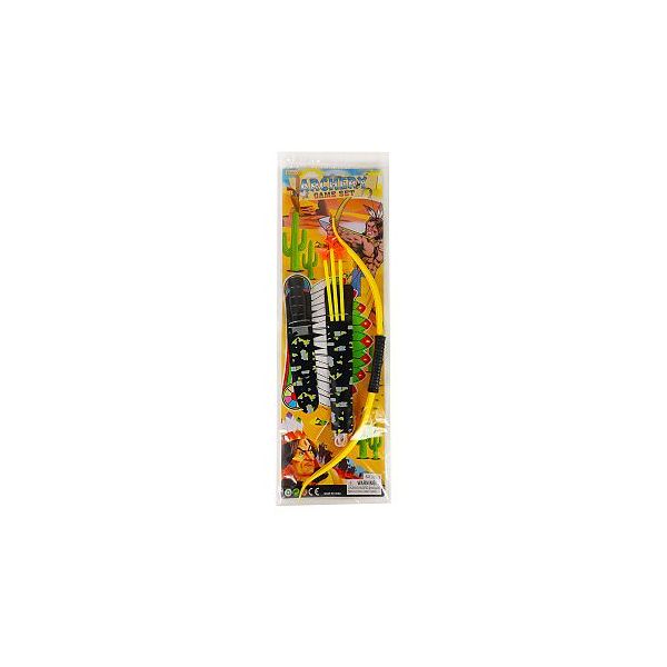 Natáhni, zamiř a střílej! Tato lovecká sada obsahuje úchvatný luk, 3 barevné šípy s přísavkami v obalu a nůž. Vše je vyrobeno z plastu. Tětivu je nutné zkrátit tak, aby byla dostatečně napnutá. Věk: 3+