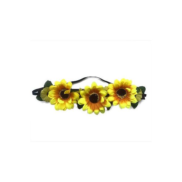 Půvabná čelenka zdobena žlutými květy a zelenými lístky, je skvělým doplňkem nejen na karneval. Čelenka je na gumu a ve vlasech vypadá bezvadně! Věk: 14+