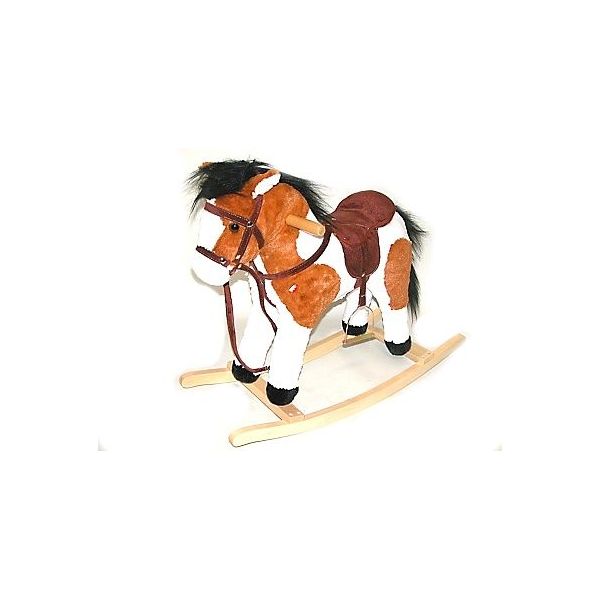 Houpací koník menší velikosti s efekty. Při houpání dítě trénuje hrubou motoriku, učí se držet rovnováhu. Koník má: •hnědobílou barvu •sedlo se třmeny •po stranách dřevěné držadla •zvukové efekty (řehtání, zvuky cvalu) •nosnost max. 50 kg Rozměry: •výška od země do sedla 40 cm •délka i s houpadly 80 cm