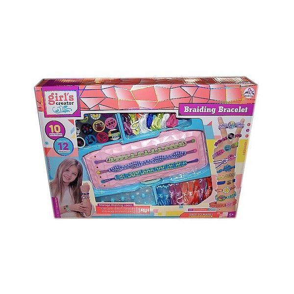 Kompletní set pro tvorbu náramků, ideální pro kreativní projekty a osobní šperky. Obsahuje krabičku na zaháknutí náramku při pletení a na uložení potřeb pro tvorbu náramku, ozdoby, nálepky, návod, provázky na tvorbu náramků. Velikost krabičky 23cm. Ze sady lze vyrobit až 12 náramků. Návod obsahuje 10 stylů pletení. Věk: 5+
