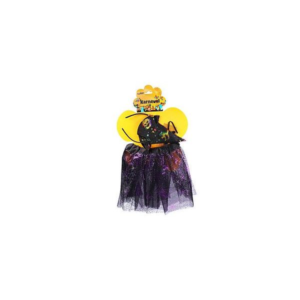 Karnevalový set - čarodějnice/pavouk Obsahuje: sukně, čelenka Délka sukně: 29cm. Věk: 3+