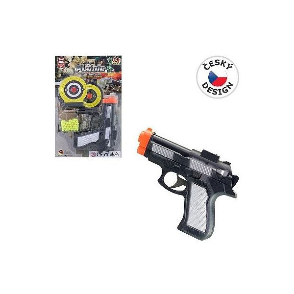 Pistole na kuličky se dvěma terči, 15 cm. Vyrobeno z plastu. Věk: 3+