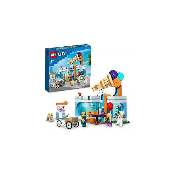 Hračka s motivem obchodu se zmrzlinou – Se stavebnicí LEGO® City Obchod se zmrzlinou (60363) bude vaše město ještě zábavnější. Je skvělým dárkem pro fanoušky oslav, zmrzlináren a skvělých hraček od 6 let • Co děti najdou v krabici? – Vše, co potřebují k sestavení Obchodu se zmrzlinou a nákladního kola, a navíc 3 minifigurky včetně prodavače v kostýmu ledního medvěda • Hrajte si na oslavy – Připravte se na spoustu detailů pro nápadité hraní včetně zmrzlinového pultu, mixéru, lednice a venkovního posezení • Zábavný dárek pro děti od 6 let – Darujte tuto stavebnici LEGO® k narozeninám či jakékoliv jiné příležitosti • Rozměry – Model Obchod se zmrzlinou od LEGO® měří přes 17 cm na výšku, 16 cm na šířku a 12 cm do hloubky • Doplňky pro minifigurky LEGO® – Mezi doplňky najdete mléčný koktejl, telefon, dárek a 2 zmrzlinové kornoutky • Nechybí interaktivní návod – Objevte intuitivní aplikaci LEGO® Builder. Umožní dětem přibližovat a otáčet modely ve 3D, sledovat postup stavění a prozkoumávat a ukládat virtuální stavebnice