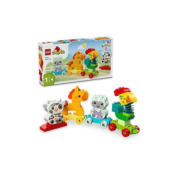 Znáte dítě, které si zamilovalo kreativní hraní a hračky s motivem přírody? Představte dětem od 18 měsíců stavebnici LEGO® DUPLO® (10412) Můj první vláček se zvířátky, se kterou si procvičí přiřazování barev. Součástí této vzdělávací hračky pro nejmenší jsou 4 rozkošné modely zvířátek – kohout, koník, jehňátko a kravička – se kterými děti čeká cesta plná zábavného hraní. Malí stavitelé si procvičí schopnost řešit problémy při stavění zvířat podle kartiček a při přiřazování zvířat ke stejnobarevným vagonkům. Nechybí ani 2 kostky navíc, které batolatům umožňují projevit kreativitu a vytvořit zvířecí figurky podle vlastní fantazie. Díky hravým funkcím, jako je například pohyblivý krk kohouta a připojovací vagonky, děti zdokonalí své jemné motorické dovednosti.