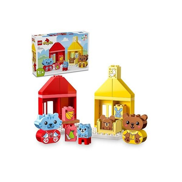Rozvoj sociálních a emočních dovedností – Stavebnice LEGO® DUPLO® Moje první každodenní aktivity: Jídlo a spánek dětem od 18 měsíců pomáhá porozumět významu každodenních činností• Přestavovací hračka pro nejmenší – Hledáte tu nejlepší hračku, která malým dětem pomůže porozumět pocitům? Tato poutavá stavebnice se 4 figurkami zvířecích rodinek je perfektní volba• Vzdělávací hračka pro interaktivní hraní – Tato stavebnice batolatům a rodičům přináší možnost přehrávat si každodenní činnosti, povídat si o emocích a stavět a přestavovat barevné domečky• Zvířátka s osobností – Figurkám medvíděte a koťátka lze vyměnit výraz za veselý nebo smutný a i ty nejmenší děti, které se teprve učí mluvit, tak snadno vyjádří své pocity• Nápad na dárek promalé milovníky zvířat – Stavebnice představuje zábavný dárek pro každou příležitost pro malé děti a pomůže jim porozumět významu každodenních aktivit• Vysoce kvalitní výrobek – Kostky a dílky z této stavebnice LEGO® DUPLO® se zvířátky pouštíme na zem, drtíme, kroutíme, zahříváme a analyzujeme, abychom zajistili, že splňují přísné normy týkající se bezpečnosti dětí• Učení hrou – Vzdělávací hračky LEGO® DUPLO® pro nejmenší byly odborníky navrženy tak, aby malým dětem pomohly s rozvojem sociálních, motorických a kreativních dovedností a empatie• Rozměry – Model se skládá z 28 dílků a měří přes 17 cm na výšku, 53 cm na šířku a 13 cm do hloubky
