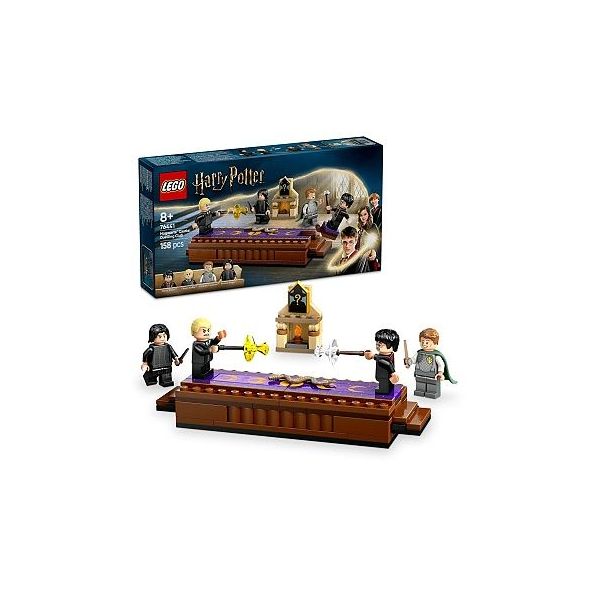 Přidejte se k Harrymu Potterovi a zjistěte, jak s pomocí magie porazit nepřátele v bradavickém soubojnickém klubu! Naučte se čarovat od profesorů Severuse Snapea a Zlatoslava Lockharta. Postavte se Dracovi Malfoyovi na bojové platformě. Pomocí hůlky sesílejte magická kouzla a svrhněte svého soupeře! Součástí je také 1 ze 14 sběratelských bradavických portrétů, které si můžete vystavit nad krbem. Připomeňte si kouzly nabitou scénu ze soubojnického klubu z filmu Harry Potter a Tajemná komnata™ se stavebnicí LEGO® Harry Potter™ (76441) Bradavický hrad: Soubojnický klub pro děti od 8 let. Součástí je sestavitelná bojová plošina pro 2 minifigurky – zatlačením schůdků na kterékoli straně svrhnete protější minifigurku – a 1 ze 14 sběratelských bradavických portrétů, které si můžete vystavit nad sestavitelným krbem. Stavebnice obsahuje 4 oblíbené postavy: Minifigurky LEGO Harryho Pottera a Draca Malfoye, z nichž má každá hůlku a dílky představující kouzla, a minifigurky Zlatoslava Lockharta a Severuse Snapea pro kreativní hraní. Tato zábavná stavebnice s Harrym Potterem představuje skvělý způsob, jak dětem a novým fanouškům představit svět čar a kouzel z kostek LEGO. Tato dobrodružná stavebnice plná kouzel je součástí řady modulárních stavebnic LEGO Harry Potter (prodávají se samostatně), jejichž spojením vytvoříte ten největší Bradavický hrad z kostek LEGO vůbec. • Kouzelnická stavebnice pro děti – Připomeňte si klasickou scénu z filmu Harry Potter a Tajemná komnata, ve které se Harry učí používat magii v bitvě, se stavebnicí Bradavický hrad: Soubojnický klub z kostek LEGO® • 4 postavy LEGO® Harry Potter™ –Minifigurky Harryho Pottera a Draca Malfoye, každá s hůlkou a dílky představujícími kouzla, a minifigurky Zlatoslava Lockharta a Severuse Snapea • Kouzelná dobrodružná stavebnice – Tato stavebnice obsahuje krb a zdobenou bojovou plošinu s funkcí svržení minifigurky (zatlačením schůdků na jednom z konců svrhnete protivníka) • 1 ze 14 sběratelských bradavických portrétů – Součástí této stavebnice LEGO® Harry Potter™ představující soubojnický klub je 1 ze 14 náhodně vybraných bradavických portrétů, které lze vystavit nad krbem • Tip na dárek pro fanoušky Harryho Pottera od 8 let – Propracovaná stavebnice představuje zábavný dárek k narozeninám i jakékoli jiné příležitosti pro děti od 8 let, které s ní objeví svět čar a kouzel • Intuitivní návod na stavění – Aplikace LEGO® Builder malým stavitelům nabídne interaktivní nástroje k přibližování a otáčení 3D modelů, ukládání stavebnic LEGO® Harry Potter™ a sledování postupu • Sběratelská stavebnice LEGO® Harry Potter™ – Tato stavebnice čarodějnického duelu je součástí řady modulárních stavebnic (prodávají se samostatně), jejichž spojením vytvoříte ten největší Bradavický hrad z kostek LEGO vůbec • Rozměry – Stavebnice se skládá ze 158 dílků a sestavitelná bitevní plošina měří přes 2 cm na výšku, 16 cm na šířku a 4 cm do hloubky