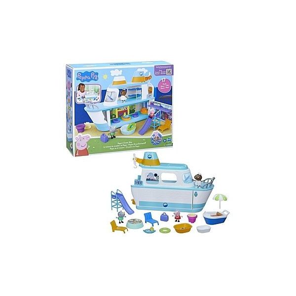 Herní sada s výletní lodí a figurkami z oblíbeného animovaného seriálu. Holčičky a kluci si s nimi mohou přehrát příběh, kdy je vezmou na zábavnou plavbu lodí. V jídelně lodi je mohou občerstvit, v herně je mohou nechat klouzat na skluzavce, vykoupat je v bazénku na palubě, povozit je na připraveném malém člunu. Výtahem je pak mohou vyvézt do patra pro odpočinek na patrových postýlkách. Funkčnost: postavičky jsou přizpůsobené držení v malých dětských ručičkách loďka má posuvná kolečka, horní paluba je odnímatelná po ukončení hry lze příslušenství uložit uvnitř lodě Obsah balení: 3 postavičky celkem 17 dílů, 13 herních doplňků Kupte dětem autíčko s postavičkami! Vhodné pro děti od 3 let Materiál: plast