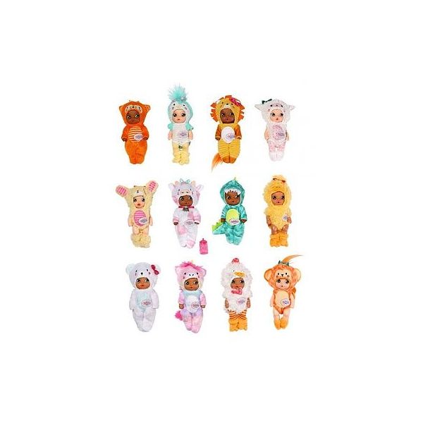 BABY born Surprise Zvířecí miminka, PDQ, 12 druhů Čas na karneval! Čáp se rozhodl uspořádat karneval pro miminka BABY born Surprise. Miminka se proto oblékla do roztomilých chlupatých zvířecích kostýmů. Maskují se jako zvířátka z džungle, lesa, farmy, ze zasněžených pólů nebo z říše fantazie. A kdopak se uvnitř zvířecích kostýmů schovává? Je to holčička nebo chlapeček? A jakou barvu má lahvička pro miminko? Po narození mají miminka zavřená očička. Chceš-li zjistit, jakou mají očička barvu, jemně otři víčka vlhkým hadříkem. Miminka moc ráda pijí vodu z lahvičky a také nosí plenku. Páni, to je ale překvapení! Když se miminka počůrají do plenky, objeví se na ní hezký vzor. Jakmile objevíš všechna tajemství miminka, můžeš vyplnit jeho rodný list. Součástí je i plakátek s přehledem miminek BABY born Surprise a se zábavnými hrami. vĚK: 3+