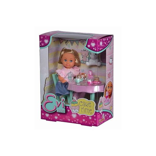 Panenka Evička a její mazlíček, součástí stoleček se židličkou, káva a zákusky. Velikost panenky 12 cm. •Věk od: 3 roky •Země původu: CN •Určení: holky •Šířka (cm): 12 •Výška (cm): 16 •Hloubka (cm): 7