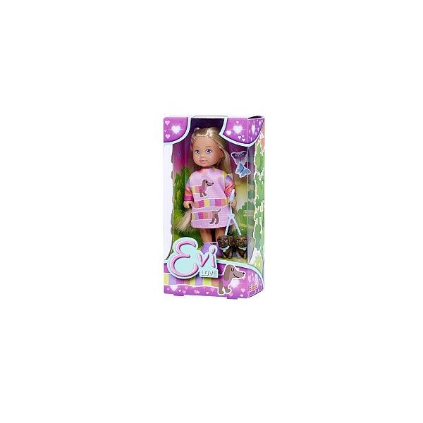 Panenka Evička s 2 pejsky na vodítku. Velikost panenky 12 cm. Věk: 3+