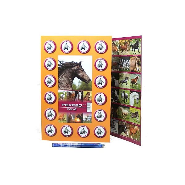 Pexeso se skládá z 32 obrázkových dvojic. Principem hry je vyhledávání dvojic. Karty jsou při hře otočeny obrázkem dolů a obracejí se po dvou. Je nutné zapamatovat si náměty obrázků a místo, na kterém leží. Hra pro 2 a více hráčů.