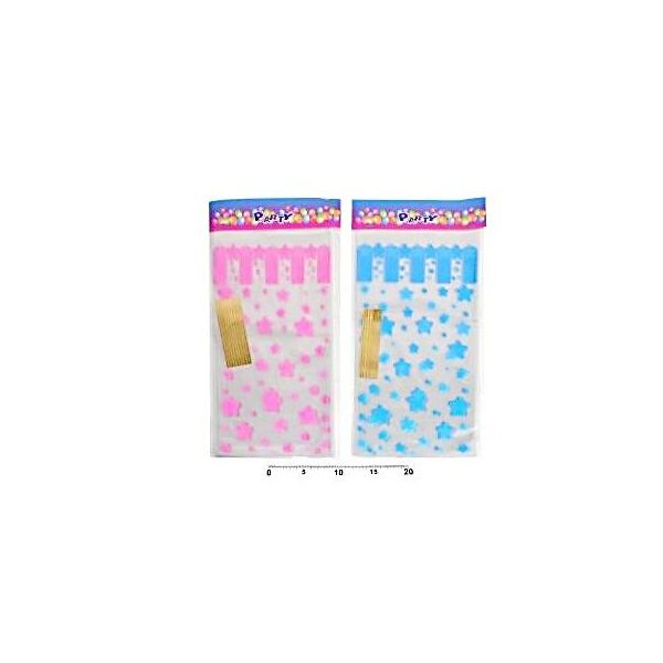Sáček celofán 18x37 cm - balení 10 ks •party - růžová nebo modrá srdíčka •součástí balení 10 ks zlatých drátků na stažení