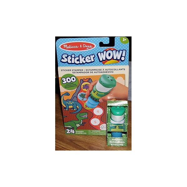 Razítkovač se samolepkami Sticker WOW!™ od Melissa & Doug je zcela nový způsob, jak si hrát se samolepkami! Nechte rozkošného sběratelského dinosaura Olivu razítkovat a razítkovat, razit si cestu přes 24 stránek plných zábavy s prehistorickou tématikou počítání, přiřazování a hledání. Doplňovatelný razítkovač na samolepky je naplněn svazkem 300 různých samolepek! Tématické náplně se prodávají i samostatně a jsou kompatibilní s jakýmkoliv dalším razítkovačem samolepek Sticker WOW!™. Samolepky jsou určeny na tisk do hracího bloku plného aktivit a her. Samolepky lze z jakéhokoli povrchu lehce odstranit a opět nalepit. Celý produkt je v praktickém formátu, vhodný pro malé děti na cesty, které s ním mohou dobře manipulovat a používat ho, včetně uzavíratelné kapsy pro uložení razítkovače. Samolepka WOW!™ podporuje jemnou motoriku, kreativní hru a je pro děti naplňující zábavou! Balení obsahuje: 24stráková obrázková knížka s 300 ks snadno odstranitelných samolepek průměr 20 mm a razítkovač Sticker WOW!™ s motivem dinosoura. Je to skvělý dárek pro dívky a chlapce ve věku od 3 do 7 let.