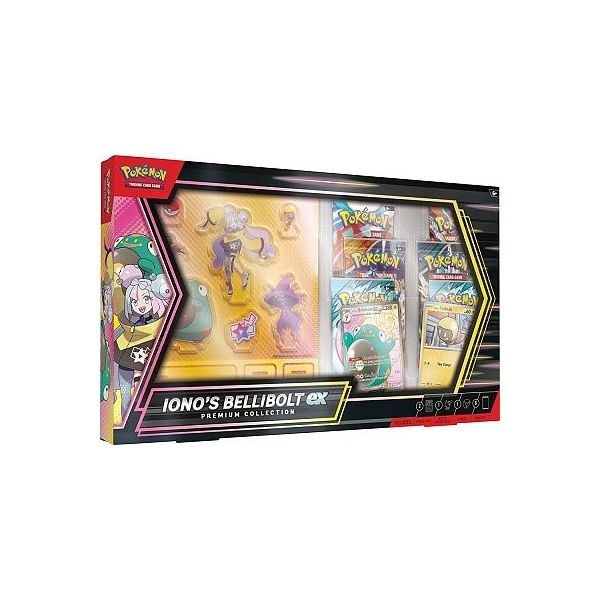BALENÍ OBSAHUJE - 1 full-art foil promo karta Iono’s Bellibolt ex - 1 foil karta Iono’s Tadbulb - akrylové stojánky Iono, Bellibolt a další - 1 oboustranný backdrop display - 1 fotolepka Iono and Bellibolt - 6 Pokémon TCG booster balíčků - A kód pro Pokémon TCG Live