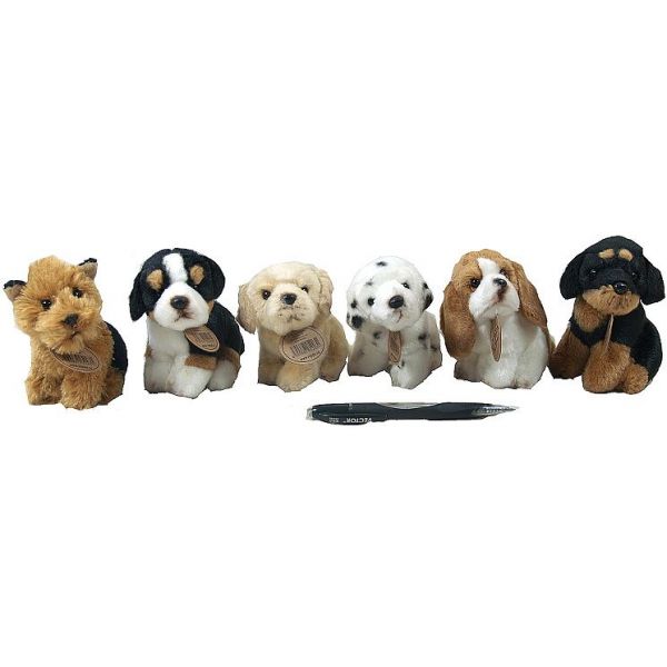 Reálná plyš, pes sedící 11 cm, 6 druhů.
