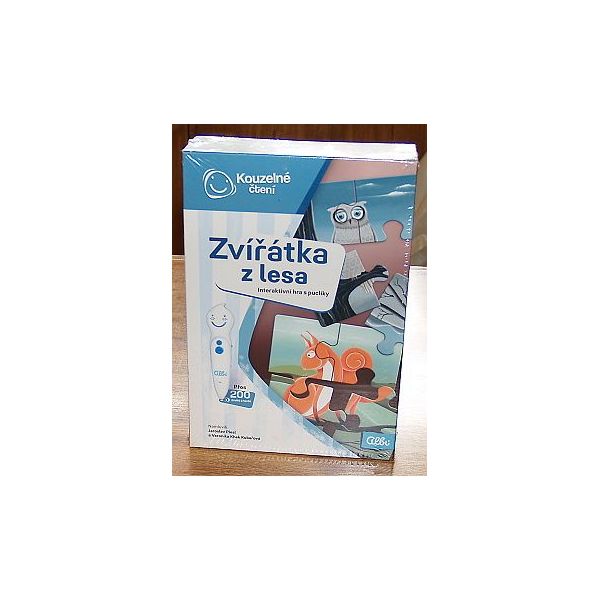 Zvířátka v lese je jednou z knih řady Kouzelného čtení, které je určeno pro použití s interaktivním perem, které není součástí balení a je nutné ho zakoupit jako samostatný produkt. Tato verze kouzelného čtení je kombinací lota, pexesa a puzzle postav. Holčičky a kluci se mohou seznámit s jelenem, kancem, zajíci a dalšími zvířátky, které žijí v lese. Úkolem malých hráčů je pomocí správného poslechu najít dílky pro svoji postavičku. Hromádka puzzle dílků je otočena rubem nahoru. Varianty obtížnosti jsou v této knize tři. Děti tužkou aktivují novou informaci a přiřazují ji správné postavě. Úkoly jsou ve druhé variantě těžší a ve třetí variantě děti aktivují informaci o postavě formou hádanky. Říkanka je na pozadí každého rámečku. Hra s puclíky Zvířátka v lese z edice Kouzelné čtení obsahuje přes 200 zvuků a textů. Obsah balení: 8 herních karet/rámečků na 4 dílky puzzle 32 puzzle, pravidla Kupte dětem interaktivní knihu! Vhodné pro děti od 3 do 7 let Počet hráčů: 2 - 8 Průměrná doba hry: 15 - 30 min Rozměry balení: 29,5 x 20 x 6,5 cm Země původu: ČR