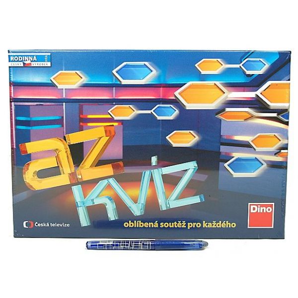 Hra AZ kvíz. Balení obsahuje 1 herní plán, 36 žetonů, 120 oboustranných karet s otázkami, 1 bodovou hrací kostku, 1 hrací kámen a 1 pravidla. Hra je určena pro 2 a více hráčů. Vhodné od 13 let.