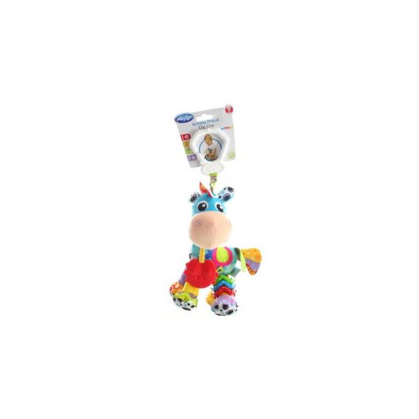 Měkký textilní koník je to nejlepší, co svému miminku můžete dopřát. Je vyroben z pestře vzorovaných materiálů, které působí příznivě v rozvoji dětského zraku. Rozmanité struktury materiálů stimulují dětský hmat. Koníkovi tlapičky šustí a v jedné nožce je ukryta řachtací kulička. Na krku má pověšené kousátko, které uleví od bolesti při prořezávání zoubků. Hračka je opatřena závěsným klipem, kterým je možné hračku zavěsit na postýlku, kočárek nebo autosedačku. Rozměry koníka cca 27 x 16 x 11 cm. Věk 0+