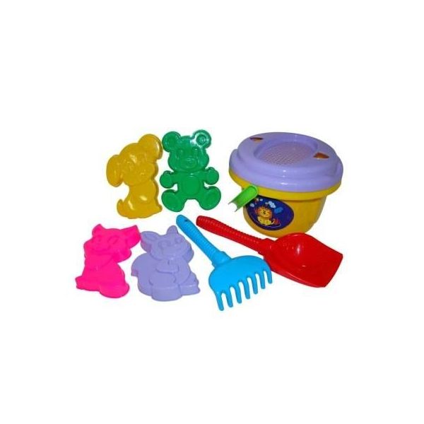 Sada na písek č. 243: Kbelíček velký: Sítko velké č.2, formičky, lopatka, hrabičky. Baleno v síťce, rozměry. 220 x 195 x 280mm : /+1