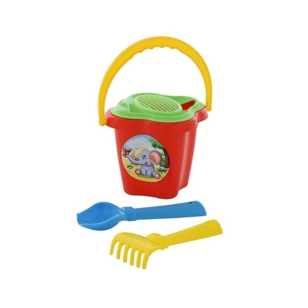 Sada na písek č. 23: Kbelíček střední tvar květ: sítk /+1 Baleno v síťce, rozměry: 170 x 145 x 182 mm