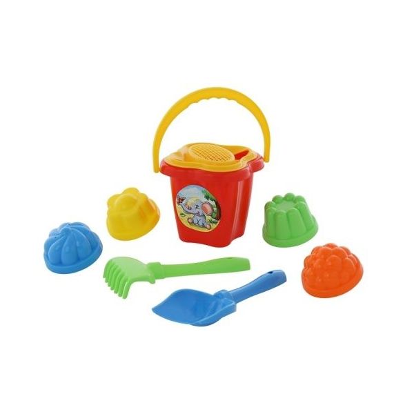 Sada na písek č. 142: Kbelíček střední - tvar květ: sítko, bábovky, lopatka, hrabičky. /+1 Baleno v síťce, rozměry: 170 x 145 x 230 mm