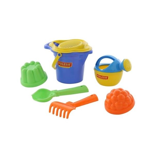 Sada na písek č. 349: Kbelíček malý s hubičkou: Sítko, konývka, formičky, lopatka, hrabičky, Baleno v síťce, rozměry:150?140?190 mm /+1