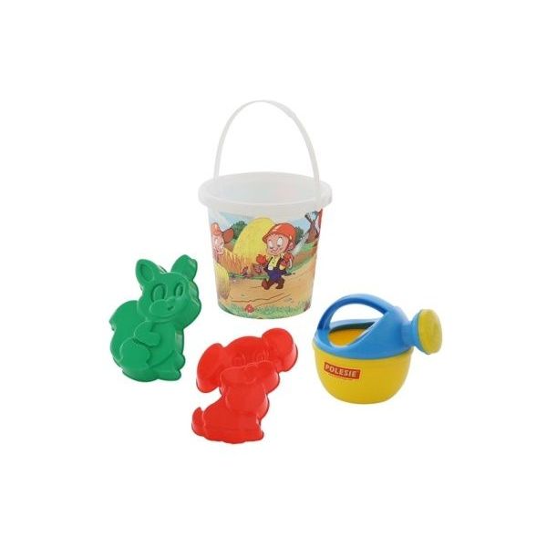 Sada na písek č. 316: Kbelíček IML, formičky, konývka. Baleno v síťce, rozměry: 175 x 173 x 210 mm /+1