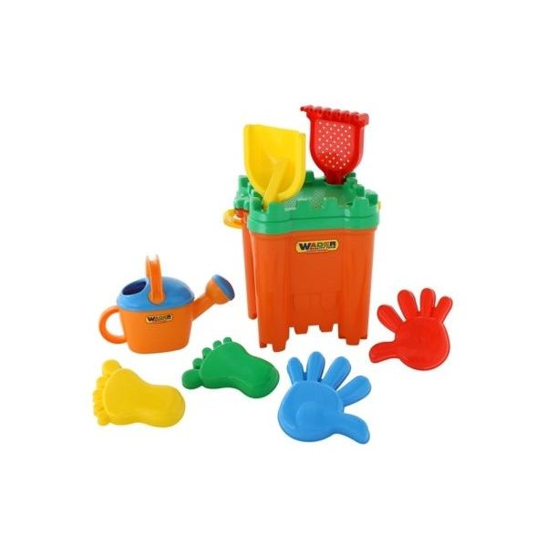 Sada na písek č. 471: Kbelíček Pevnost maxi, sítko, hrabičky, lopatka, formičky, konývka. Baleno v síťce, rozměry: 290 x 275 x 415 mm /+1