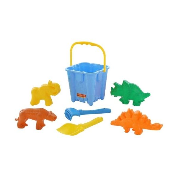 Sada na písek č. 551: Kbelíček velký tvar hrad hranatý, formičky, lopatka, hrabičky. Baleno v síťce, rozměry: 180 x 160 x 240 mm /+1