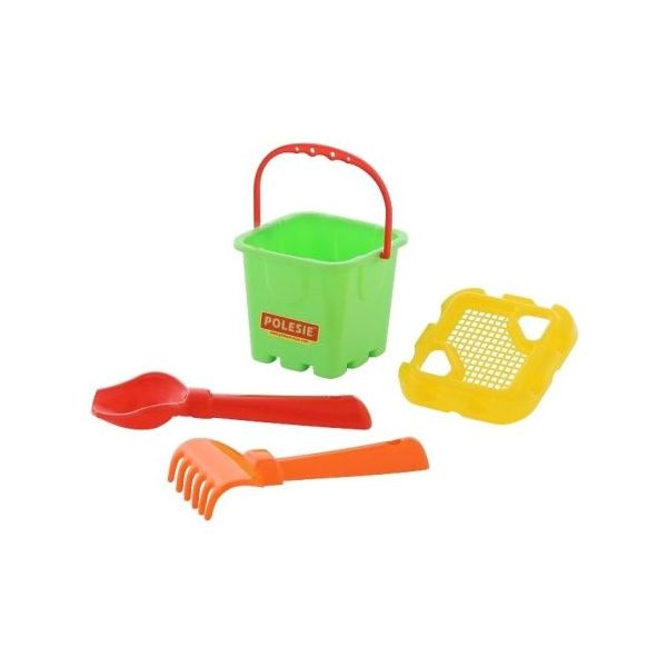 Sada na písek č. 262: Kbelíček malý - tvar pevnost: Sítko, lopatka, hrabičky. Baleno v síťce, rozměry: 105 x 100 x 175 mm /+1