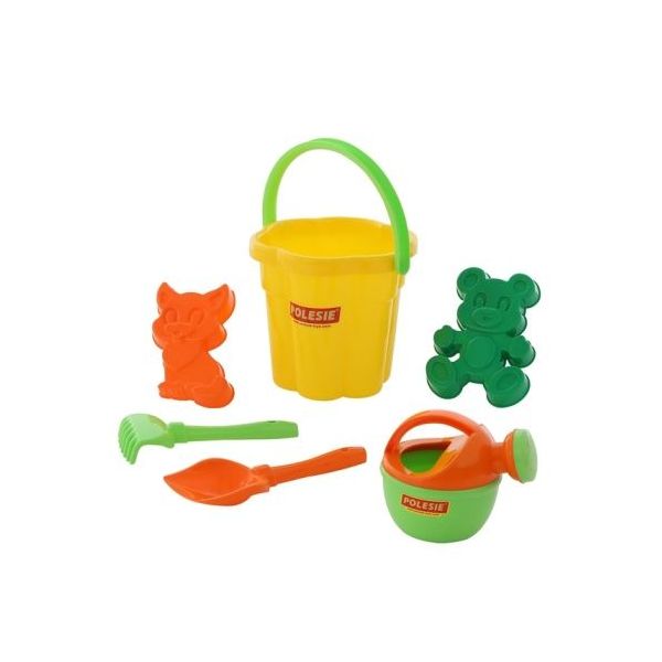 Sada na písek č. 166: Sítko velké - tvar květ:: Lopatka, hrabičky, konývka, formičky. Baleno v síťce, rozměry: 220?190?225 mm /+1