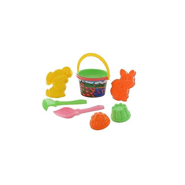 Sada na písek č. 213: Kbelíček střední IML, Sítko, Lopatka, hrabičky, formičky. Baleno v síťce, rozměry: 227 x 155 x 165 mm /+1 ****