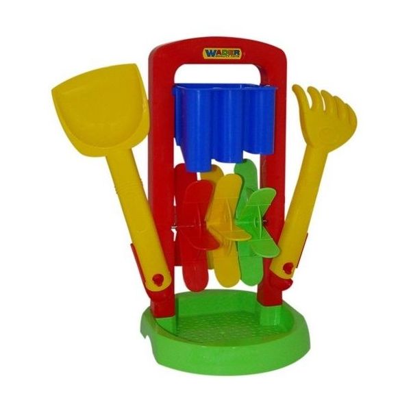 Sada na písek č. 413: Mlýnek č.4, lopatka č.31, hrabičky, /+1 Baleno v síťce, rozměry: 240?195?333 mm