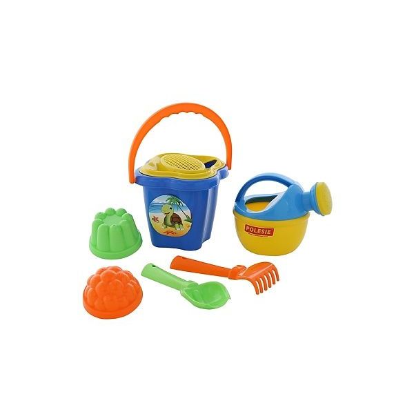 Sada na písek č. 158: Kbelíček střední - tvar květ: sítko, konývka, formičky, lopatka, hrabičky. Baleno v síťce, rozměry: 170 x 165 x 230 mm /+1 ****