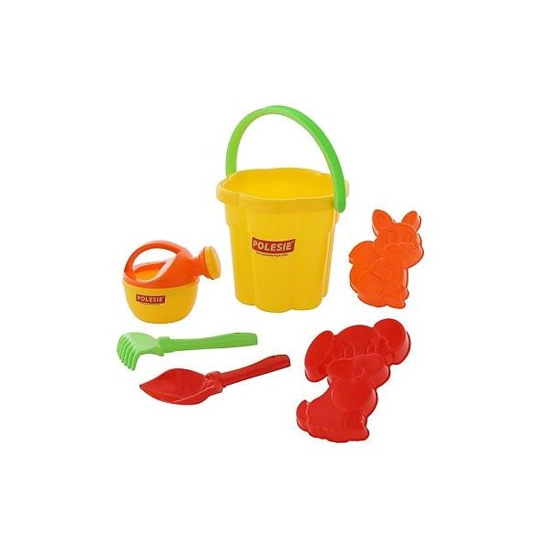 Sada na písek č. 164: Kbelíček velký tvar květ: lopatka, hrabičky, konývka, formičky. /+1 ****
