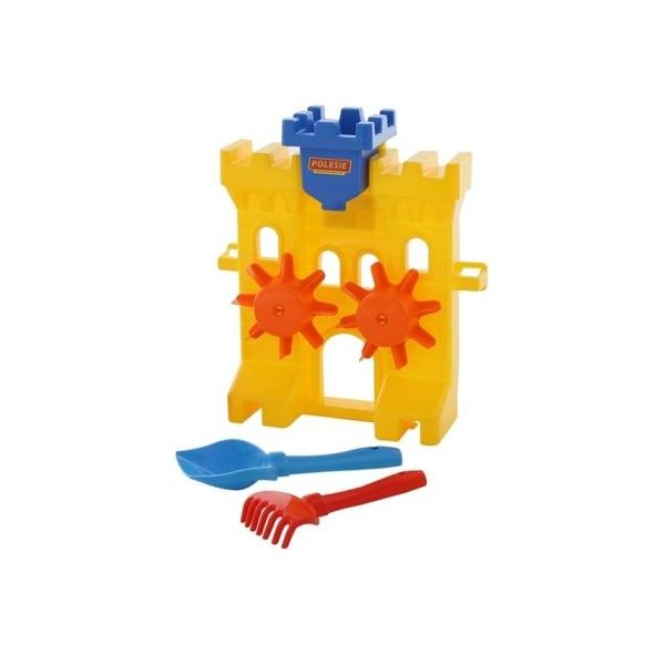 Sada na písek č. 475: Mlýnek Pevnost, lopatka č.5, hrabičky /+1 Baleno v síťce, rozměry: 305 x 110 x 343 mm