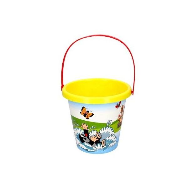 Kyblík Krtek, objem 1,5 L. Žlutá barva. Vyrobeno z plastu, věk: 3+