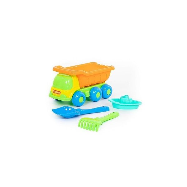 Sada na písek č. 267: Auto Květa sklápěčka, Lopatka, hrabičky, lodička. Baleno v síťce, rozměry balerní: 290x151x155 mm /+1 ****